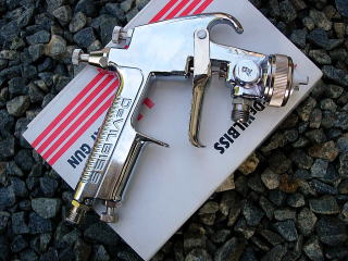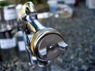 スプレーは経験に基づく「垂れ寸」(垂れる寸前)が塗装の深みのコツだった